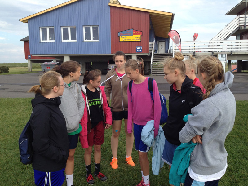 Am 7.8.machten sich 12 Mädchen mit Headcoach Frank Müller und Co-Trainerin und Teammanager Janine Krein auf den Weg ins 500 km entfernte Husum. Dort erwartete sie der Co-Trainer Nils Trautmann mit seiner Familie. Außerdem stießen zwei weitere Spielerinnen und die Physiotherapeutin Amelie Ahlhelm zum Leistungscamp hinzu (einzig Seraphina konnte wegen Teilnahme an der U 16- EM nicht dabei sein).