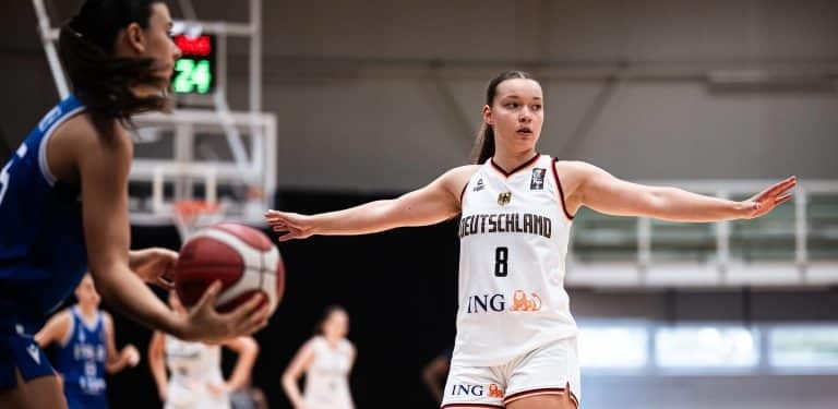 Frederike Askamp (Capitol Bascats), Lara Gierlich (Rheinstars Köln), Darina Zraychenko (Foto, TSV Hagen 1860), Lena Haverland (BC 70 Soest/CB RE/WNBL Metropolitain), Emma Huppertz (TG Neuss Tigers), Alma Schiffer (RheinStars Köln) und Linda Thimm (Dragons Rhöndorf).
